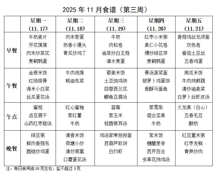 陕西师范大学幼儿园2025年11月份第三周食谱