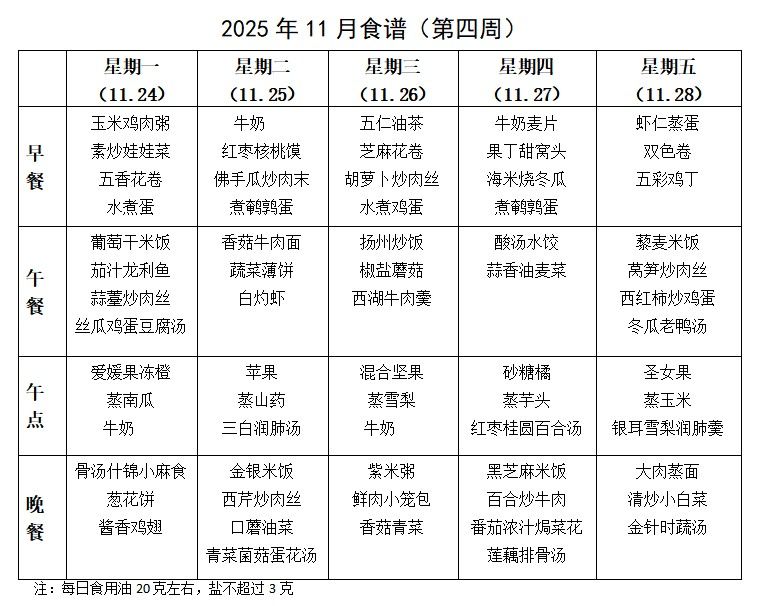 陕西师范大学幼儿园2025年11月份第四周食谱