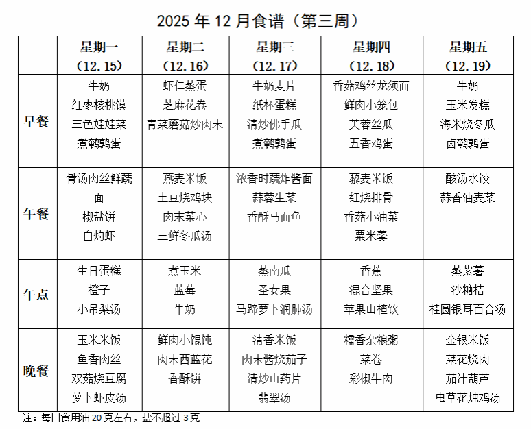 陕西师范大学幼儿园2025年12月份第三周食谱